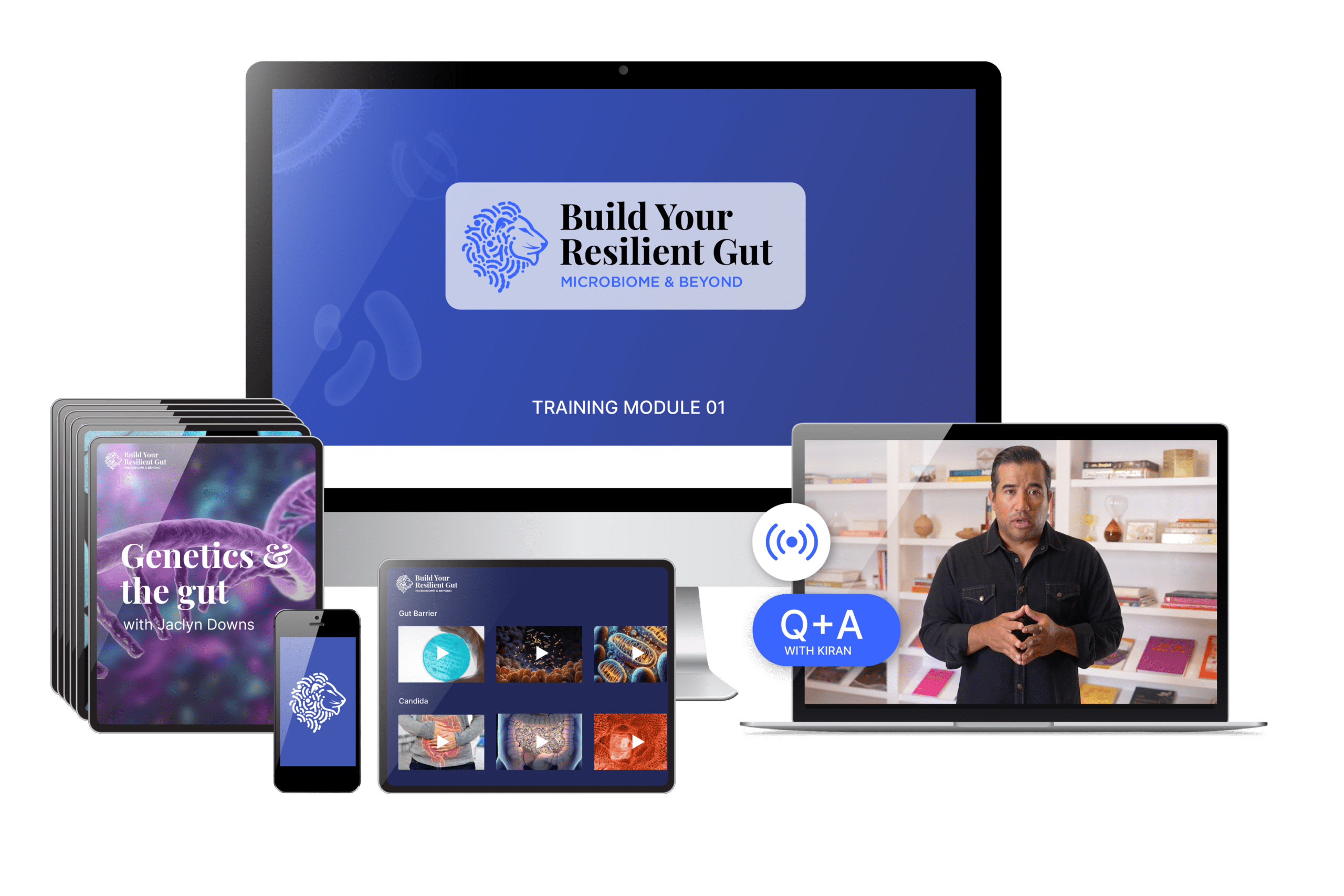 The Build Your Resilient Gut Program is the first and only course that brings together microbiologist Kiran Krishnan’s complete microbiome-centered framework — built from decades of research, clinical education, and teaching tens of thousands of people around the world.